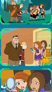 - When Kim and Bonnie are stuck to Dementor's machine, they get "frizzies" but when they get off it, their hair is back to normal.