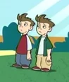 Jim and Tim Possible are identical twin geniuses brothers, and younger siblings of Kim Possible, whom she calls "Tweebs"–a portmanteau of "twin" and "dweebs". They are distinguished by the major coloring of their clothing; Tim habitually wears red, while Jim wears green.
