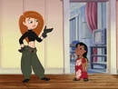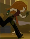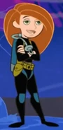 The new outfit consists of a purple turtleneck t-shirt, black pants with a purple stripe, gray shoes (or boots), a Wrist-mounted Kimmunicator, brown gloves, brown a pouch on her left leg, and a brown belt. It was first seen and created in Clothes Minded by Monique with the help of Rufus, inspired by a design by the Fashionistas . This outfit was made after Kim's original mission outfit was ruined and discontinued.