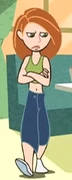 Kim's original mission outfit consists of a black long-sleeve three-quarter length turtleneck crop top that bares her midriff, green sport jeans, dark grey gloves, black shoes, and a brown belt. She has worn this mission outfit for almost every episode up until Clothes Minded when her mission outfit gets damaged as well as discontinued. It is presumed it will get repaired. She sometimes wears it with her hair in a low or high ponytail.
