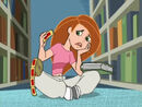 At the school library Kim is putting library books back on their shelves and decides to check if Miss Hatchet is around. She isn’t, so Kim makes a call on her Kimmunicator asking Wade where Ron is, having not seen him all day. Wade, while trying to help Ron at Dementor’s hideout tells her he hasn’t heard from him at all. After hearing his voice from Wade’s end of the Kimmunicator, she is asks if it was Ron but Wade just says it’s a scream from his video game, Pollinator. Hatchet then catches Kim in the act, and orders her to put labels on every single book in the library.