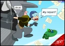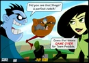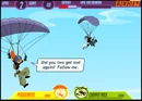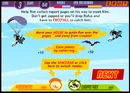 Ron's Freefall is a game from the Disney.com webring. Just as Kim and Ron are parachuting out of a plane after a mission, Ron is ambushed by Dr. Drakken and Shego in their hovercraft, and loses all of his homework in the air. Players must help Ron collect the pages of his homework, all while avoiding various obstacles.